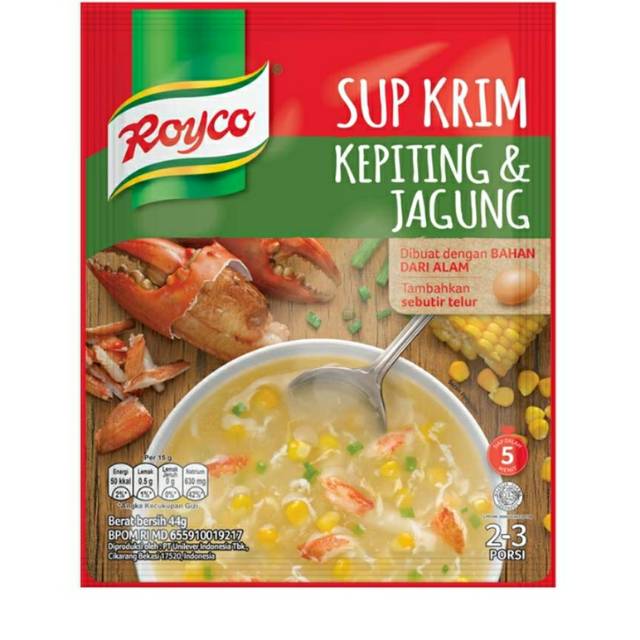 Royco Sup Krim 44gr Kepiting Jagung Ayam Cream SoupRp10000. Royco Sup Krim Kepiting dan Jagung dibuat dengan bahan berkualitas dari alam menjadikan sup lezat dan nikmat. Untuk kamu yang senang dengan.