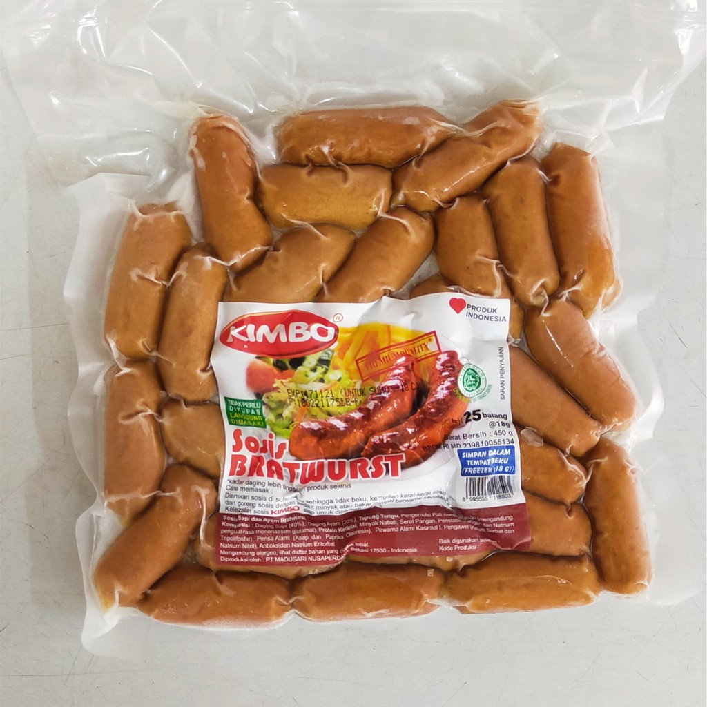 Sosis vigo isi 30 Rp22000 Bekasi Toko Wulan Sosis fino21 Rp12000. SOSIS KIMBO BRATWURST ORIGINAL ISI 10 PCSRp29500. Kimbo sosis gold plus bockwurst cocktail diperkaya vitamin E omega-3 dan omega-6 Sosis Kimbo merupaka merk sosis yang kulitnya bisa dimakan dan membuat gigitan.